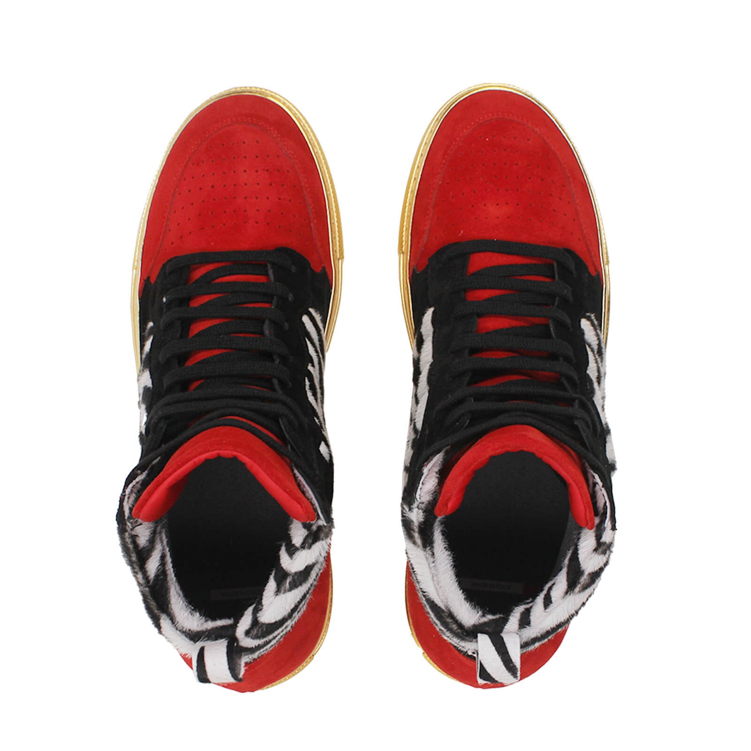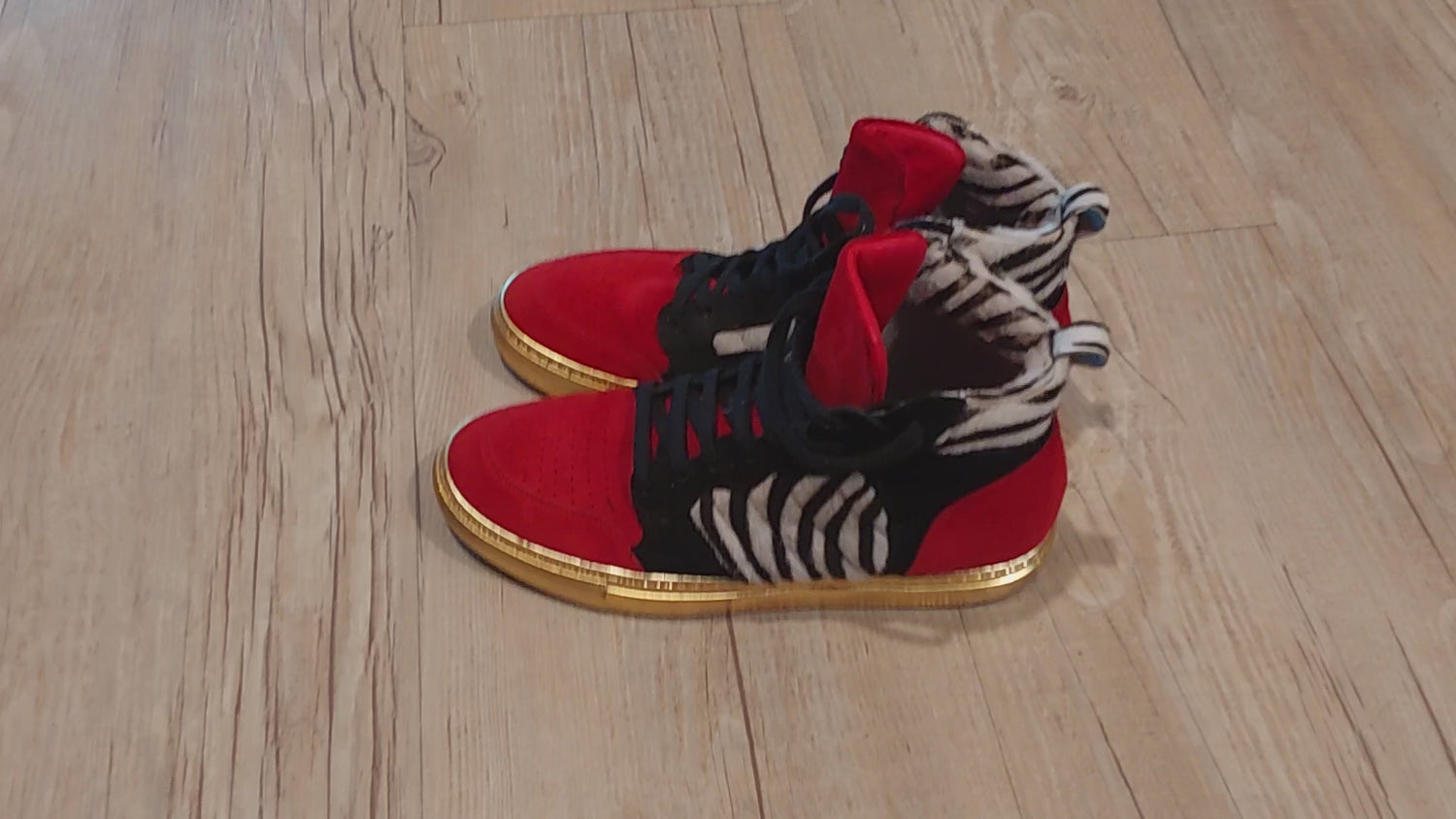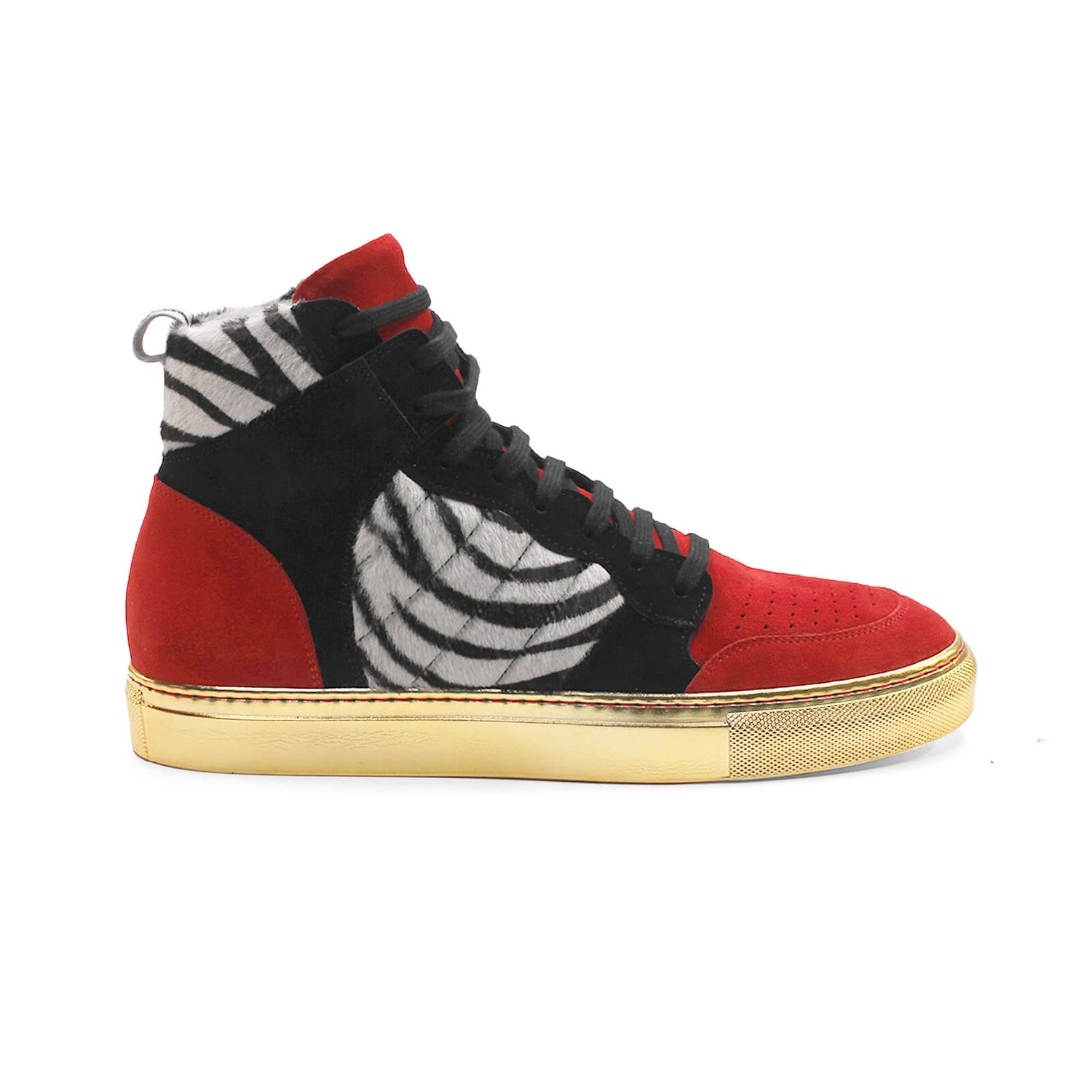 The R Julain Baxster aka The Baker. As one my favorite desins to date this retro basketball design is one that you may see often with the Reece Julian brand. Eventhough it was not the first design of this basketball retro it will definitly stand out among them. I went with the Michael Jordan championship Chicago Bulls colors being that Jordan is my favorite basketball player. Check out the solid gold sole that was added for a little bling. Covered in all Italian Suede with the addition of the zebra print fur makes this a one of a kind retro thats sure to turn heads when you walk in the building.