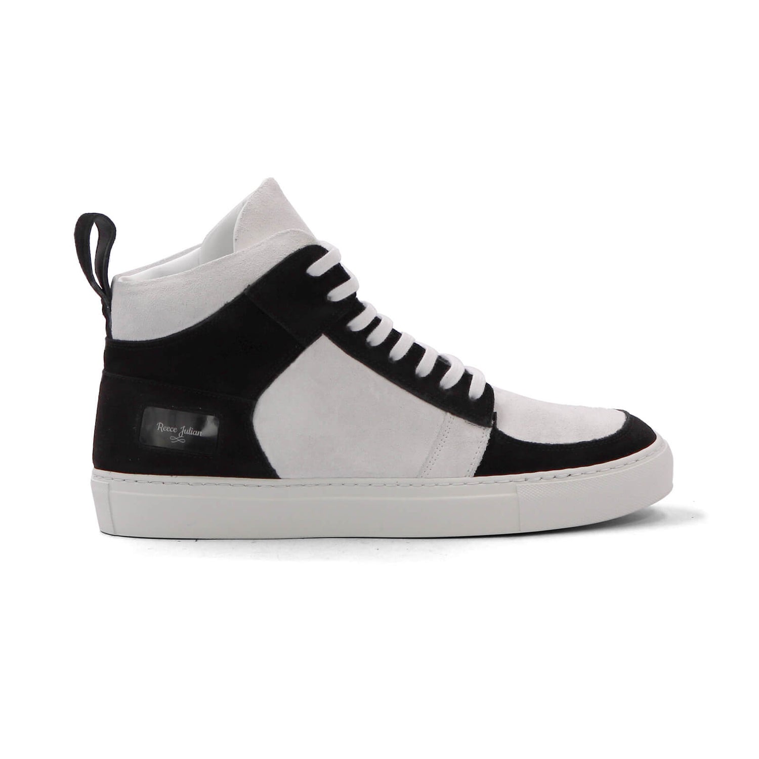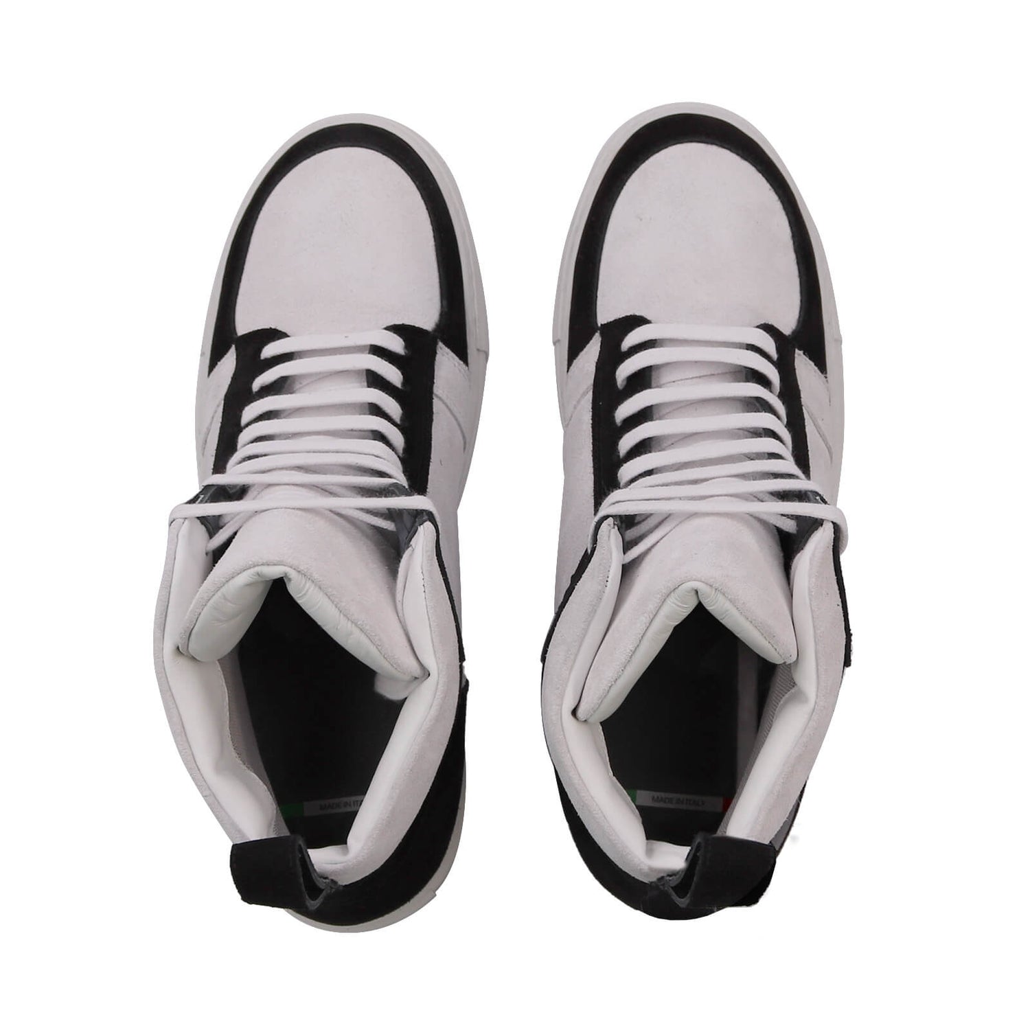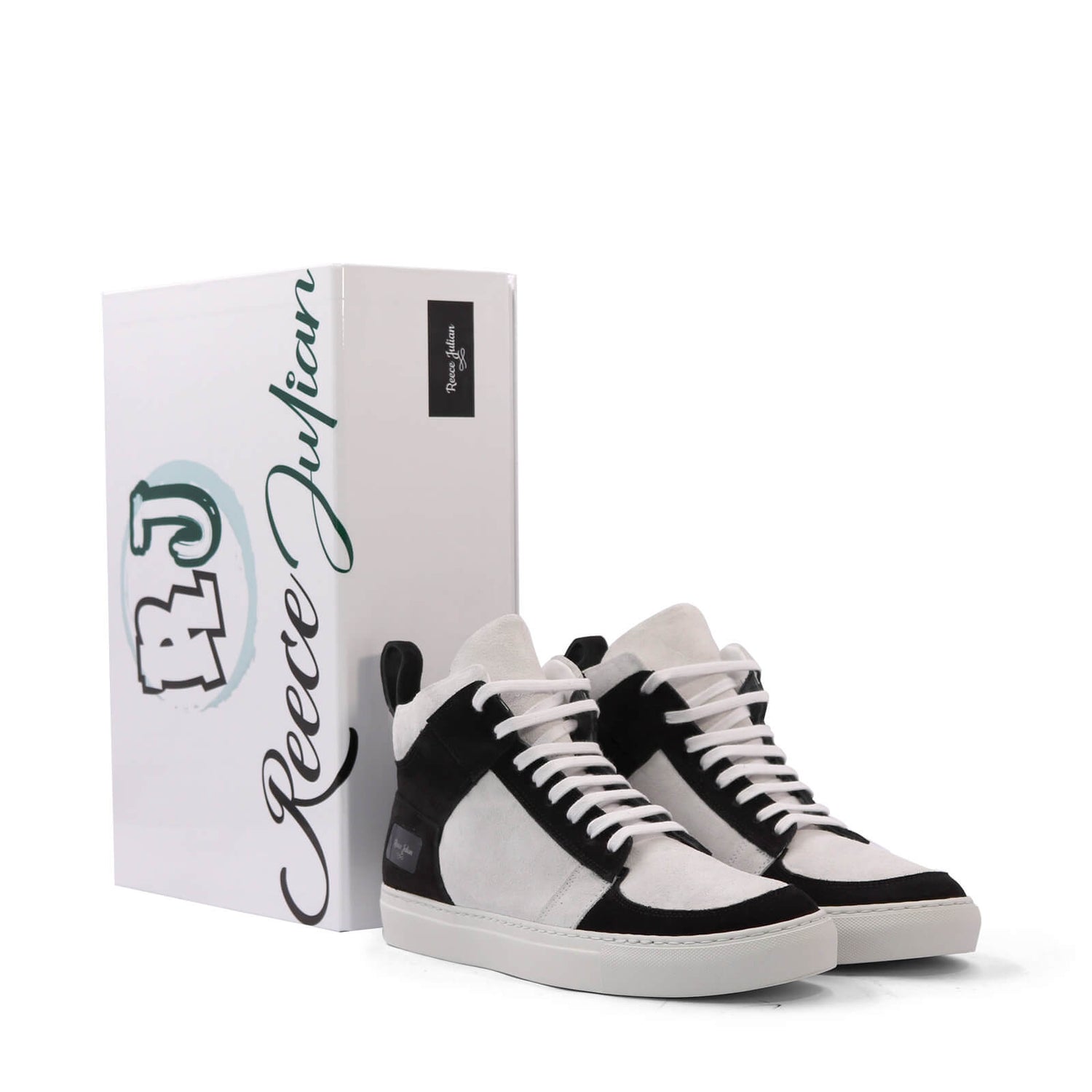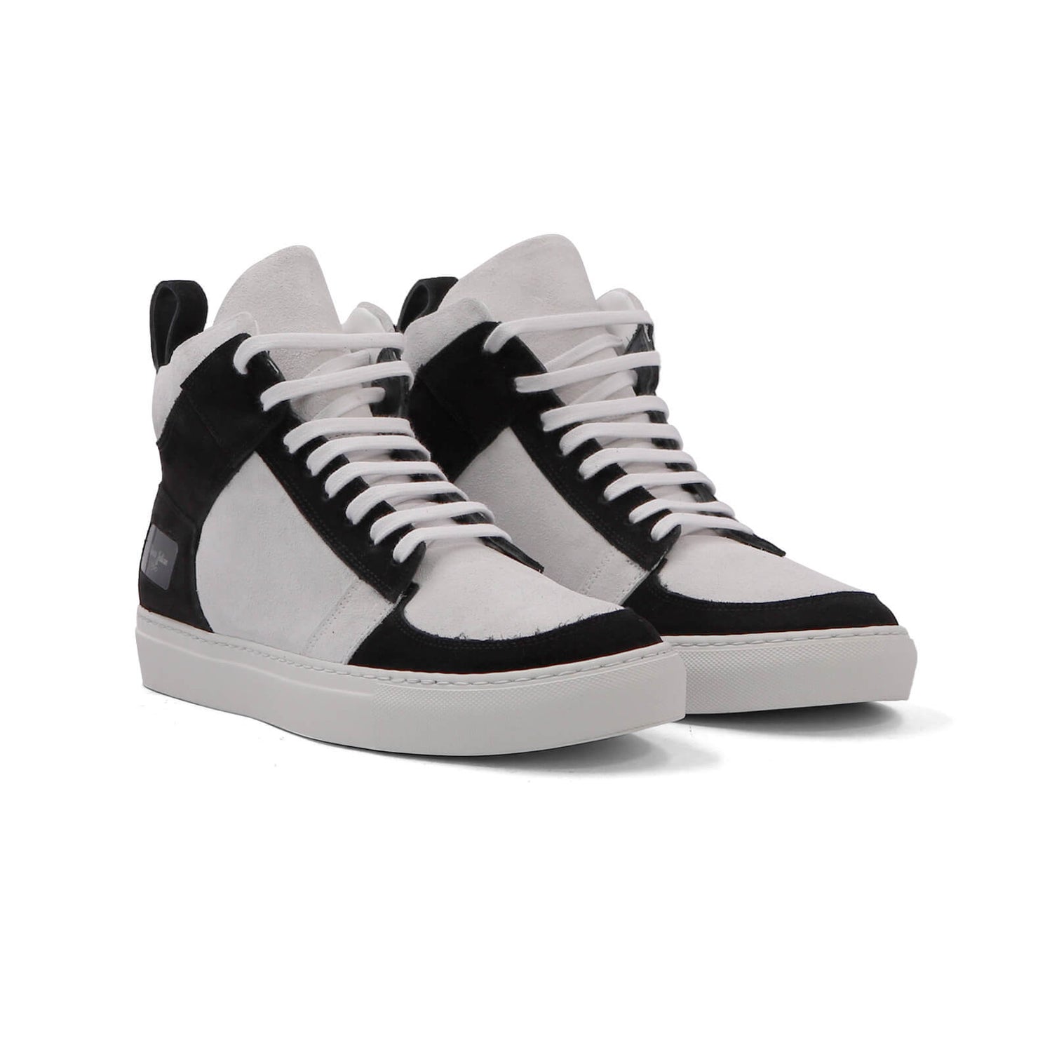 This high-top sneaker is a classic but reinvented style. The high profile is made from soft materials panels that offer many customization possibilities. The upper features a lace-up front, an extra-large soft tongue, and a heel loop at the back. The padded ankle collar and heel counter provide a comfortable fit. A logo patch is placed on the side of the heel cap for branding.